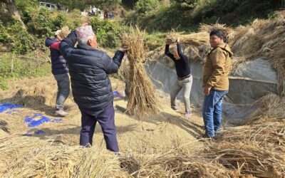 नाङ्लेपानीका किसानहरूसँग धान झाँट्दै बाबुराम