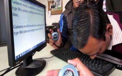 नाकले कम्प्युटर टाइप गर्ने युवा