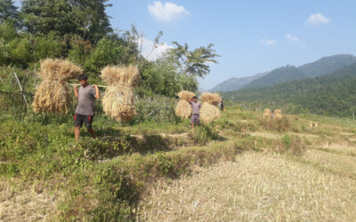 दाङका किसान धान भित्र्याउँदै