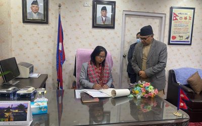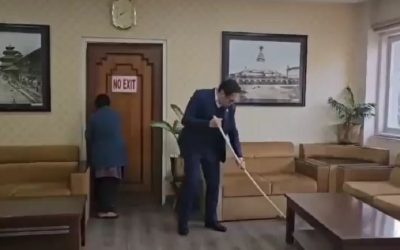 आफ्नो कार्यकक्षमा आफैं सरसफाई गर्दै मन्त्री किराती (भिडिओसहित)