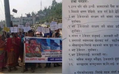 सडक अलपत्र पार्ने ठेकेदार सांसद कान्छारामविरुद्ध प्रदर्शन