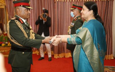 राष्ट्रपति भण्डारीद्वारा भारतीय स्थल सेनाध्यक्ष पाण्डेलाई मानार्थ महारथीको दर्ज्यानी चिह्न प्रदान