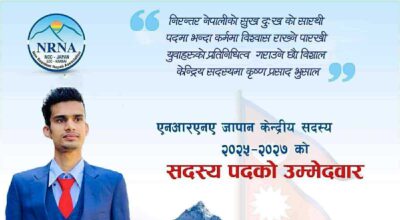 NRNA जापानको केन्द्रिय सदस्यमा कृष्ण प्रसाद भुसालको उम्मेदवारी घोषणा