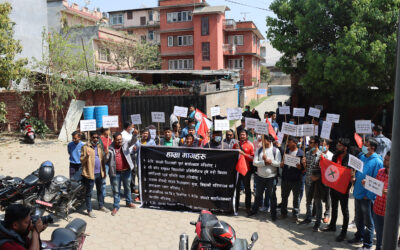 कांग्रेस पार्टी कार्यालयमा नेविसंघको प्रदर्शन