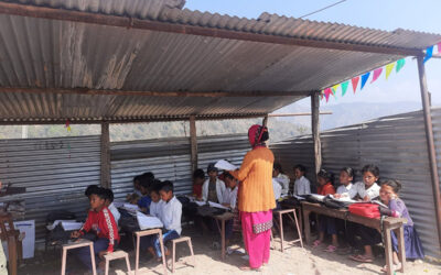 टिनको छाप्रोमा एक कक्षाः जहाँ विद्यार्थीहरु एक हातले घाम छेक्दै एक हातले लेख्छन्