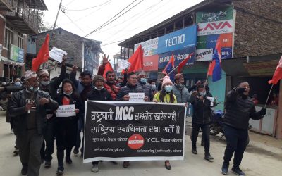 एमसीसी सम्झौता विरुद्ध खोटाङमा युवा तथा विद्यार्थी संगठनको प्रदर्शन