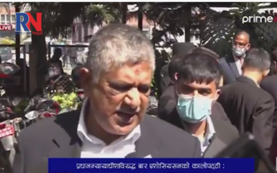 स्वागत नेपालको नेतृत्वमा नेपाल बार परिसरमा सेतापट्टी बाँधेर कानून व्यवसायीहरुको प्रदर्शन
