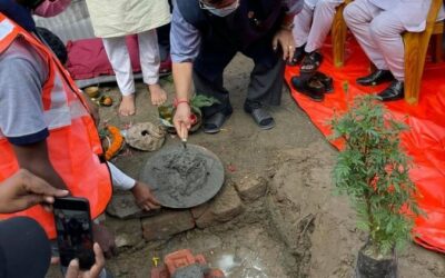 स्वास्थ्य मन्त्री श्रेष्ठले कोशी अस्पतालको परिसरमा निर्माण हुन लागेको भवनको शिलान्यास गर्दै