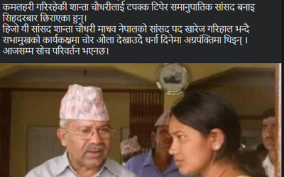 पुर्व सचिव उपाध्यायको शान्ता चौधरीलाई प्रश्न : आफ्नो उद्धार गर्ने नेताको सांसद पद खान चोर औंला देखाउने ?