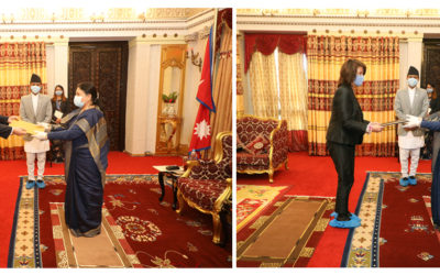 नेपालका लागि गणतन्त्र कोरिया र युरोपियन युनियनका राजदूतले बुझाए राष्ट्रपतिसमक्ष ओहदाको प्रमाणपत्र
