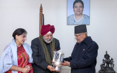 भारतीय राजदुत पुरीद्वारा प्रधानमन्त्री ओलीसँग विदाई भेट