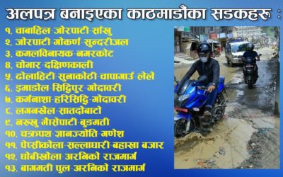 काठमाडौं उपत्यकाका १५ मुख्य सडक ठेकेदारका कारण अलपत्र