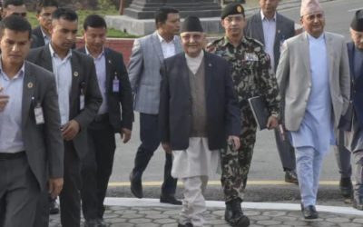 बालुवाटारमा सर्वदलीय बैठक : ओली, देउवा, दाहाल र पौडेल हिँड्दै बैठक कक्ष पुगे (फोटोफिचर)