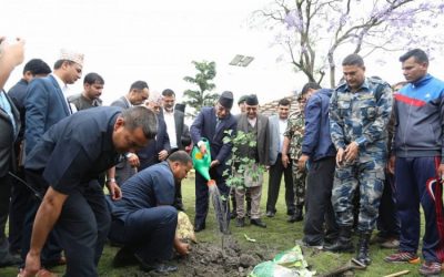 एकताको खुशीयालीमा ओली-प्रचण्डद्धारा बालुवाटारमा वृक्षारोपण