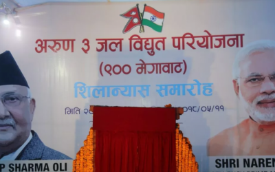 ओली र मोदीद्धारा संयुक्त रुपमा अरुण तेस्रोको शिलान्यास