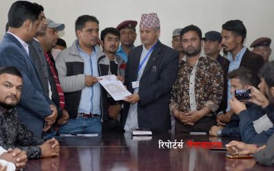 सिडिओलाई ज्ञापनपत्र बुझाउँदै नेविसंघले भन्यो,‘माइतीघर र क्याम्पसअगाडि विरोध गर्न नपाए आन्दोलन गर्छौं’ (तस्विरसहित)
