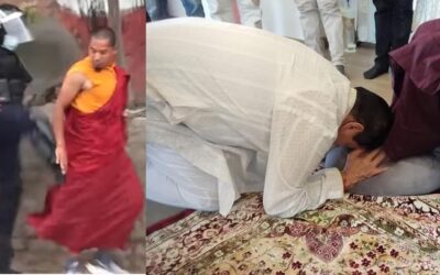 गिज्याइरहेको दुई तस्विरः स्वदेशी भिक्षु कुटिन्छन्, विदेशी गुरु पुजिन्छन्, को हुन नारायणकाजीले ढोगिरहेका व्यक्ति ?