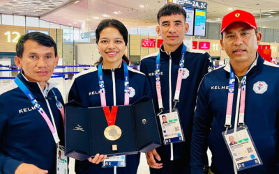 नेपाली खेलकुदमा इतिहास रचेकी पलेशालाई विमानस्थलमा भव्य स्वागत