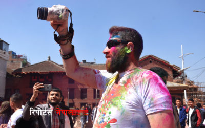 होलीको रमाइलोमा झुमे विदेशी पर्यटक