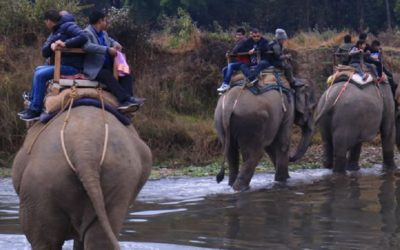 हात्ती सफारी र डुङ्गा सयरको आनन्द उठाउँदै पर्यटक