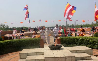 अखण्ड शान्तिदीपको अवलोकन गर्दै पर्यटक