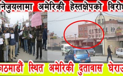 भेनेजुयलामा अमेरिकी हस्तक्षेपको विरोध गर्दै काठमाडौंस्थित अमेरिकी दुतावासमा प्रर्दशन-हेर्नुस् भिडियो