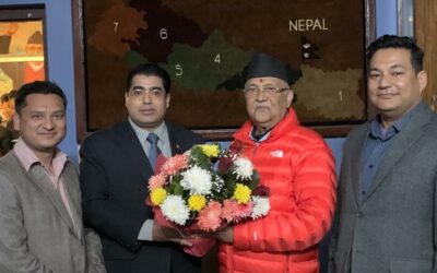 एकनाथ ढकालद्धारा एमाले अध्यक्ष ओलीलाइ बधाई ज्ञापन