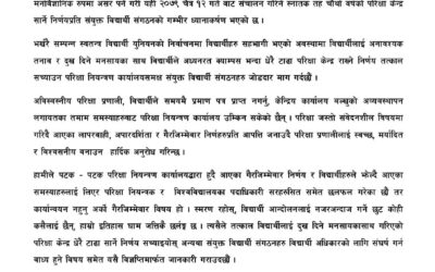 विद्यार्थीलाई टाढा हुने गरी परीक्षा केन्द्र नतोक्न तीन विद्यार्थी संगठनको माग
