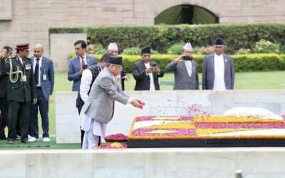 प्रधानमन्त्री प्रचण्डद्वारा गान्धीको समाधिस्थलमा पुष्पगुच्छा अर्पण