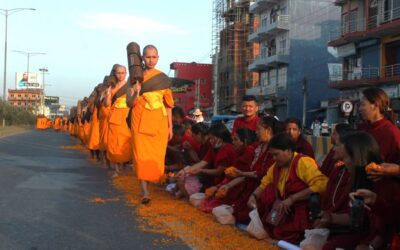 भैरहवामा धम्म यात्रा सम्पन्न, बाटोमा फूल छरेर भिक्षुको स्वागत