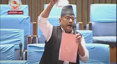 बजेटमा एकाधिकार कायम गरिएको भन्दै एकीकृत समाजवादीका सांसद थापाले सदनमै च्याते बजेट पुस्तिका