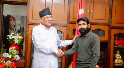 सुर्खेतदेखि एक महिना पैदल यात्रा गरी काठमाडौं आइपुगेका बोहोराले भेटे प्रचण्ड