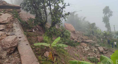 पहिरोले मध्यपहाडी लोकमार्ग अवरुद्ध, बोलबमका लागि हलेसी आउने तीर्थालु अलपत्र