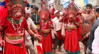 भक्तपुरमा यसरी प्रदर्शन हुँदै छ ‘निलबाराही द्यो प्याखँ’