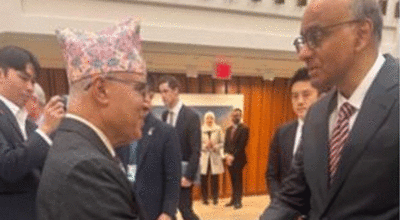 सिंगापुरका राष्ट्रपति थरमनसँग अर्थमन्त्री खनालको भेट