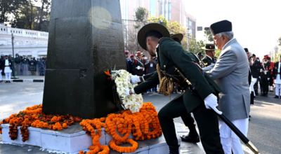 राष्ट्रपतिद्वारा राष्ट्र निर्माताको सालिकमा पुष्पहार अर्पण