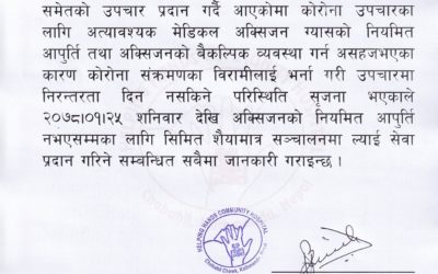 काठमाडौं, २५ वैशाख । अक्सिजनको नियमित आपूर्ति असहज भएको भन्दै हेल्पिङ्ग ह्याण्ड्स सामुदायिक अस्पतालले विरामी