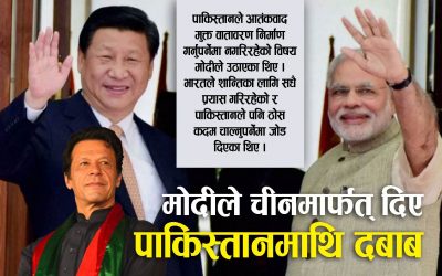 भारतीय प्रधानमन्त्री नरेन्द्र मोदीले चीनका राष्ट्रपति सि जिङपिङसँगको भेटमा पाकिस्तानले आतंकवाद मुक्त वातावरण निर्माण गर्नुपर्ने
