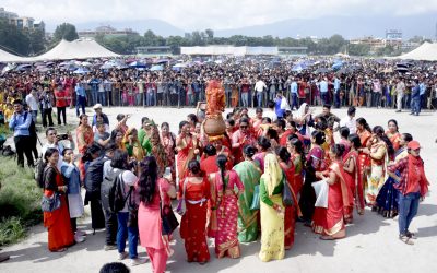 काठमाडौं, ६ भदौ । राजधानीमा बस्दै आएका सुदूरपश्चिमवासीले शुक्रबार काठमाडौंस्थित खुलामञ्चमा सांस्कृतिक कार्यक्रम गरेर गौरा