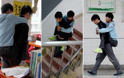 चीनको एक स्कुलमा एक छात्रले आफ्नो मांशपेशी पिडित साथीलाई दैनिक बोकेर विद्यालय पुराउने गरेका छन्