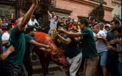 भादगाउँ, ८ साउन । आउँदो वडादशैँका लागि भक्तपुरको नवदुर्गा मन्दिरमा खःम्ये (निख्खर कालो राँगो) भित्र्याइएको