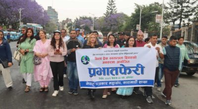 काठमाडौं, वैशाख २० । विश्व प्रेस स्वतन्त्रता दिवसको अवसरमा नेपाल पत्रकार महासङ्घ काठमाडौँ शाखाले आज