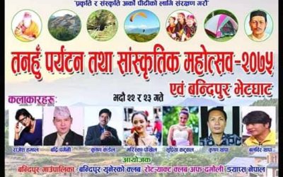 दमौली । तनहुँको पर्यटकीय नगरी बन्दीपुरमा शुक्रबारदेखि तनहुँ पर्यटन तथा सांस्कृतिक महोत्सव एवं बन्दीपुर भेटघाट