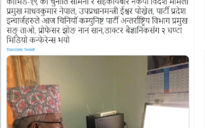 काठमाडौं, १७ वैशाख । नेपाल कम्युनिस्ट पार्टीका वरिष्ठ नेता माधवकुमार नेपालले चिनियाँ कम्युनिष्ट पार्टीका एकजना