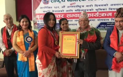 काठमाडौँ, २५ फागुन । समाजसेवी परिकल्पना राई सम्मानित भएकी छिन् । शुक्रबार एक सय नवौँ