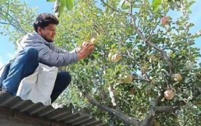 म्याग्दी, भदौ २३ । कालीगण्डकी नदी किनारको बगरमा हराभरा स्याउ बगैँचा । डाँडामाथि माटोका छाना