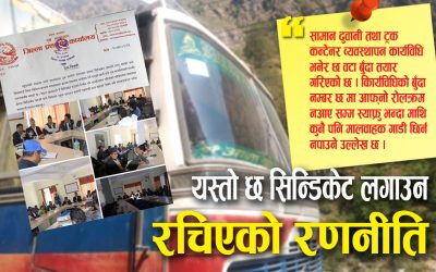 जिल्ला प्रशासन कार्यालय रसुवामा सर्वदलीय सर्वपक्षीले बैठकका नाममा नाकामा चल्ने ट्रक कन्टेनरलाई सिन्डिकेट लगाउन समिति