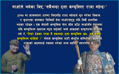 नेकपा मालेका महासचिव सीपी मैनालीले स्वतन्त्र नेपालका लागि राजा महेन्द्रको उल्लेख्य योगदान रहेको चर्चा गरे