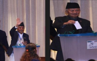 काठमाडौं, फागुन २५। राष्ट्रपतिका उम्मेदवार रामचन्द्र पौडेल र सुवास नेम्वाङले मतदान गरेका छन् । नयाँ