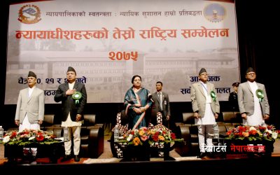 काठमाडौं, २० चैत । राष्टपति विद्यादेवी भण्डारीले न्यायाधीशहरुको तेस्रो राष्ट्रिय सम्मेलनको उद्घाटन गरेकी छिन् ।
